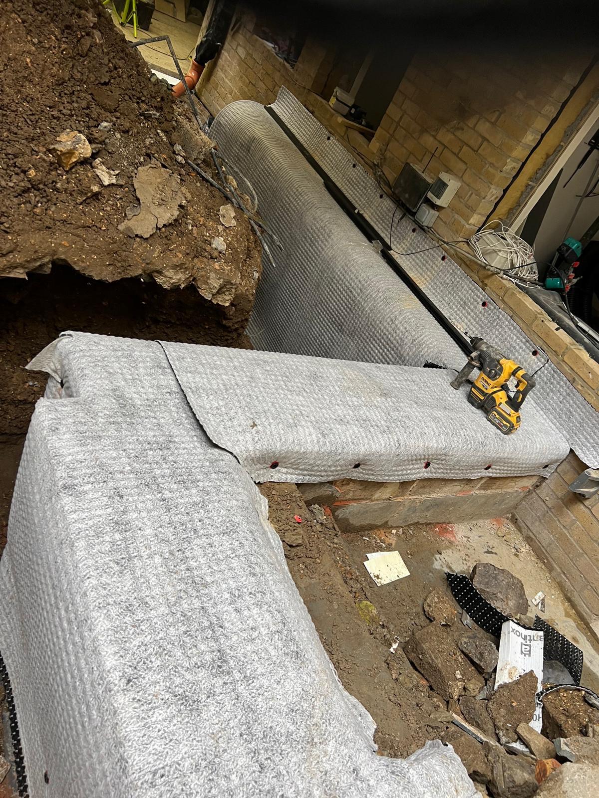 To maximise performance, we also install a geotextile protection membrane over the Sureproof layer. This adds impact resistance, protects the waterproofing from backfill damage and helps manage ground moisture — giving you an even stronger, longer-lasting system.